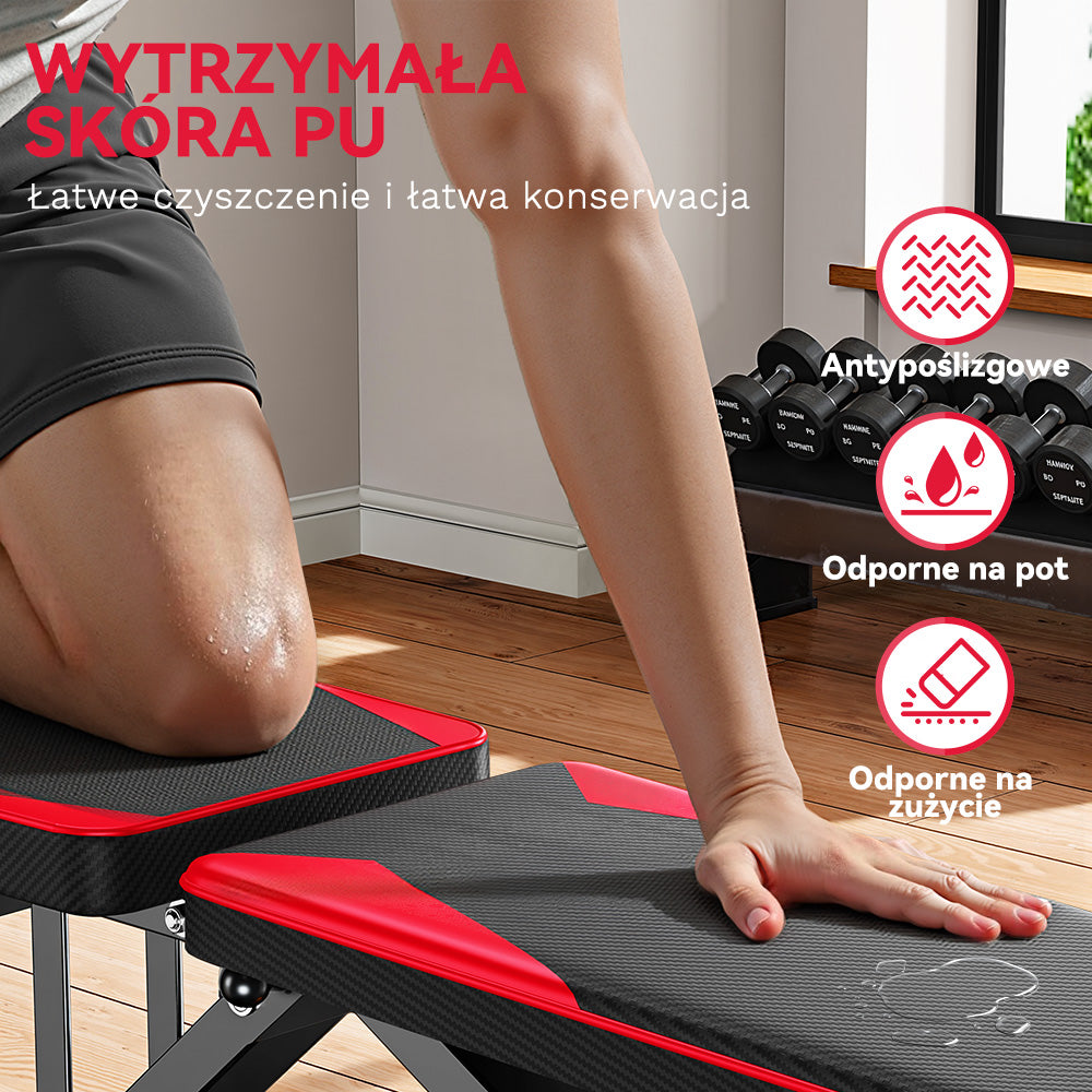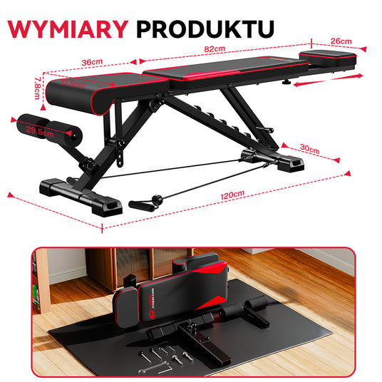 Wystarczy wysunąć trzy kołki i rozłożyć podkładkę, aby schować ławkę do ćwiczeń pod łóżkiem lub w kącie, oszczędzając do 80% miejsca!