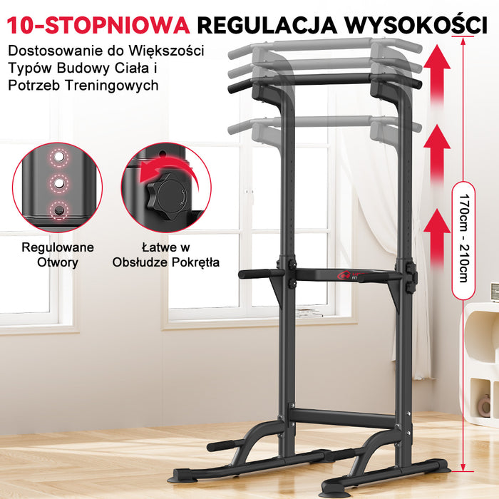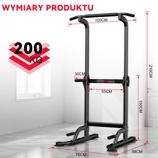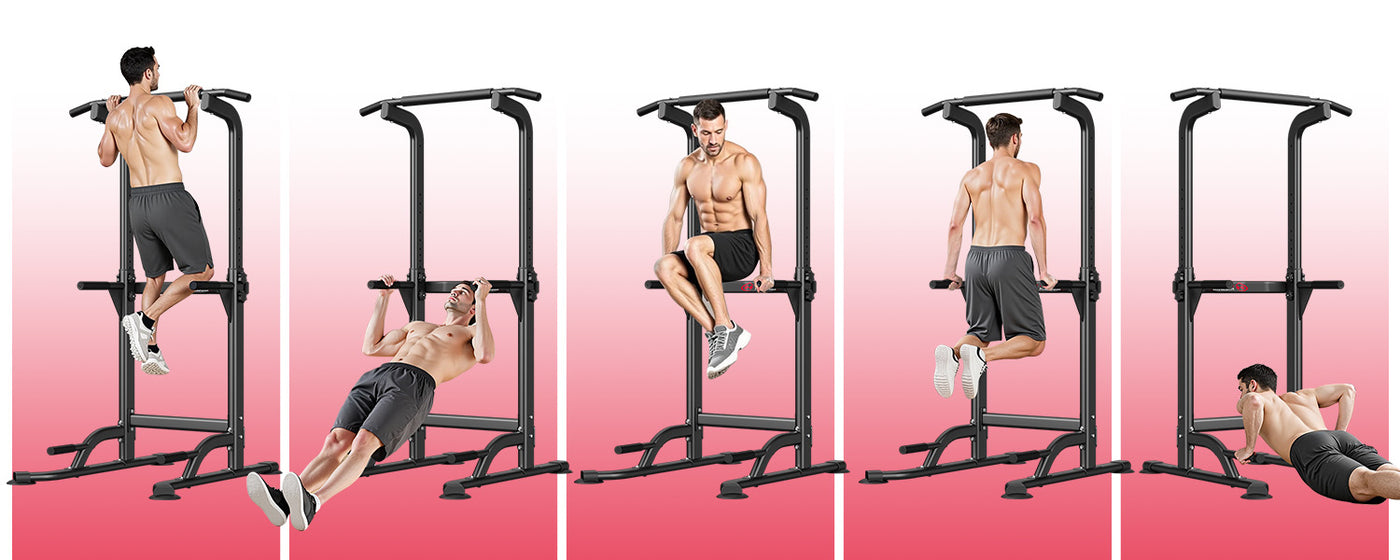 Możesz wykonywać podciągania, pompki, dipy, ćwiczyć ramiona, plecy, brzuch lub nogi – wszystko na tej wieży do dipów.